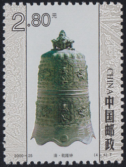 金属制成的响器为钟,在古钟制作方面,中国也是翘楚于世界的。圆形钟是铜钟的特色,它保留了其发展过程中曾经参与娱人乐器的功能,又让人们在钟的兴起中找到了贵胄情结的发生点。钟声由一撞击点而引发出来的巨大、恢宏、深远、厚重和悠长的怒吼,无疑是体现大自然的威严、神祇的神秘和拥有一切的君主思想的最好手段,是通过钟声再现崇高与伟大而产生无限遐想的纽带。明清以后,圆形钟及钟的铸造技术达到了史无前例的阶段。清代乾隆时的朝钟(图9),曾悬挂在故宫的午门上。乾隆钟重达3108公斤。其钟钮铸成双龙,肩部铸有一周外突莲花纹。中壁上布满一个个精美的云纹组成的方阵,每个方阵又铸着一条立体的动态蛟龙,堪称中国古钟的佼佼者。