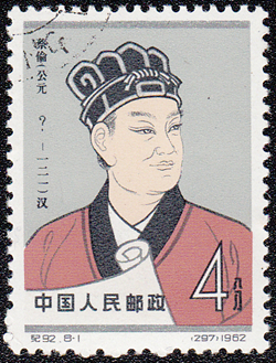 东汉时,兼任尚方令的蔡伦(图7)利用有利条件造出了一批质地良好的纸,被人称为蔡候纸。蔡伦造纸,主要扩充了造纸用的原料,除大麻、苎麻外,还充分利用了其他废旧的麻制品,如麻头、麻布、渔网、树皮等,极大地降低了造纸成本。在制桨工艺上,后人分析很有可能使用了碱液蒸煮制桨技术。采用灰水或灰水与石灰水的混合液来制桨。石灰水中含有氢氧化钙,而灰水中含有较多的碳酸钾。使用灰水或灰水与石灰水的混合液,碱性适中,既可成桨,又不破坏纤维素。蔡伦造纸被列为中国古代“四大发明”之一 ,对人类文化的传播和世界文明与进步作出了杰出贡献。