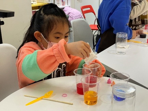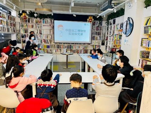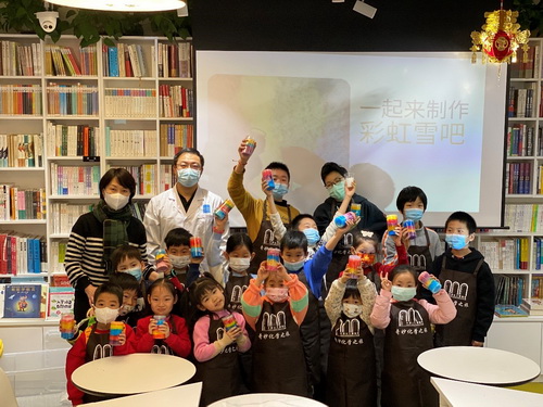 2月20日北京冬奥会闭幕日,中国化工博物馆走进青年湖畔化工出版社阅想书店,和附近社区小朋友 一同探究“探秘冬奥赛场上的雪--制作彩虹雪”实验课程,共享冬奥的冰雪乐趣。