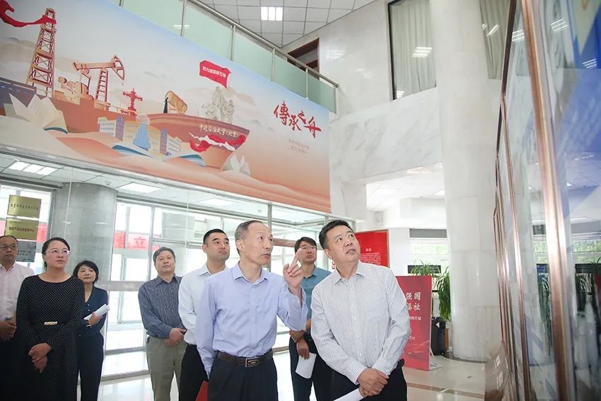 王延生副馆长指出,恰逢校庆与国庆双喜临门,百年中国化学工业文物图片展于此时走进校园,为中国石油大学送上记录着珍贵历史的生日礼物,共同献礼国庆74周年华诞,意义非凡。他介绍,本次展览是中国化工博物馆为学习宣传贯彻党的二十大精神,推动石化行业同仁深入理解党领导下的中国化学工业艰苦奋斗、创造辉煌的历史而精心策划的专题巡回展览。联合中国石油大学开展巡展合作,是一次有益的尝试与实践。希望本次展览能成为双方深化交流合作的契机与开端,未来不断发掘合作的空间,不断拓展合作的深度,充分将石油大学的科研技术优势和人才培养优势与化博的公共教育优势结合起来,共同助力化工行业的可持续发展。