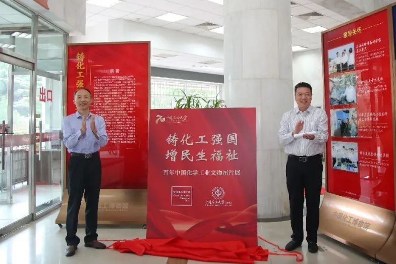 开幕式上,鲍志东与王延生共同为展览揭幕,正式宣布展览开幕,让百年化工历史为学校70周年校庆留下难忘的生日记忆。