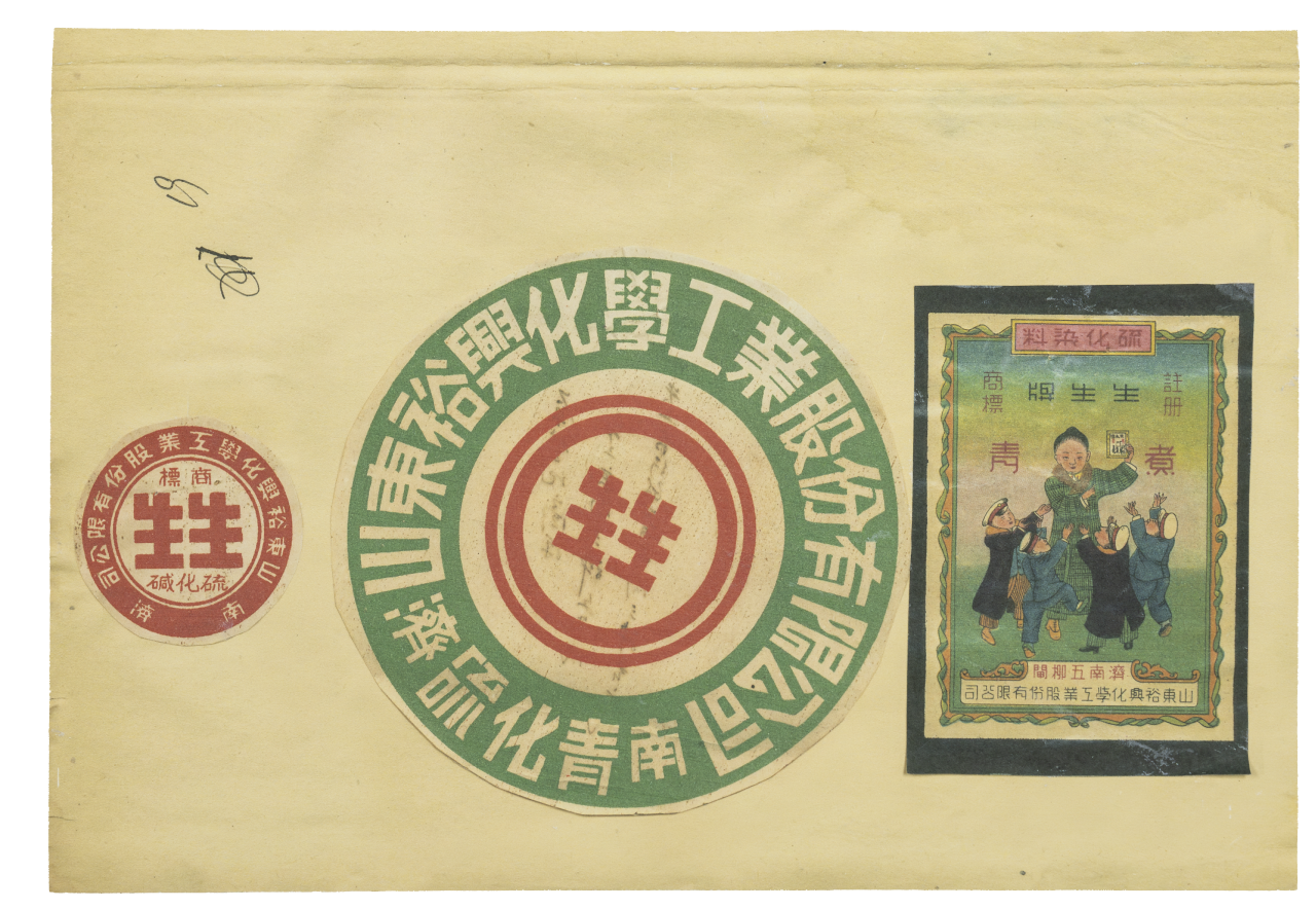 “生生”牌煮青商标,寓意“五子环绕,生生不息”,是始建于1919年的山东裕兴颜料厂的商标。