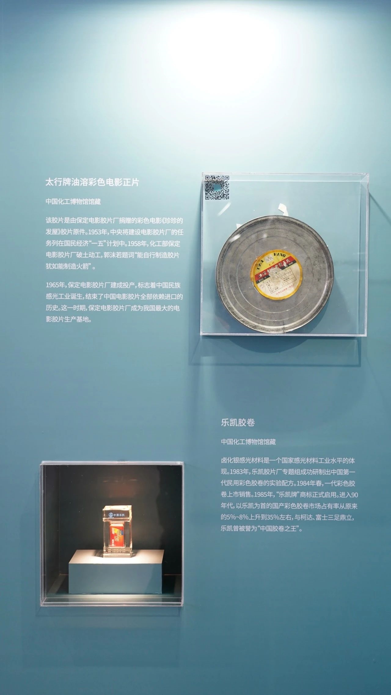 由保定电影胶片厂捐赠的彩色电影《珍珍的发屋》胶片原件,见证了化工丰富人民群众精神文化生活的新风尚。