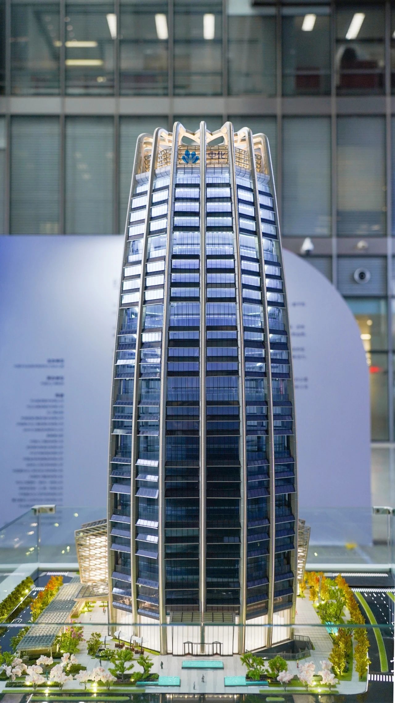 中国中化大厦是雄安新区启动区标志性建筑之一,由中国中化旗下中国金茂承建,凝聚了中国中化先进的建筑材料和科技产品。展区中央展示的是大厦沙盘。