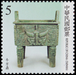 一般来说,天然红铜的纯度是相当高的,大多只含微量的锡、铅、锑、镍等金属杂质;氧化铜一类矿石只要在800°C左右即可被炭火还原,显然,人们在熔铸自然铜的过程中,进而掌握了铜矿石的选择和冶炼。把金属从化合态变为游离态的过程。图3为台湾发行的牛方鼎邮票。