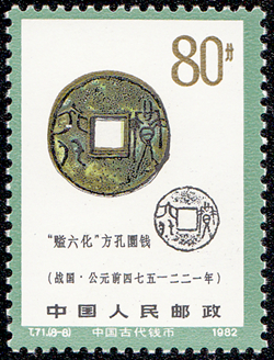 中国的古代钱币(图10)以浇铸工艺为主,不同时代有着不同的特点。商代后期,随着青铜冶炼技术的日渐成熟,出现了青铜仿贝,开启了金属铸币的先河。春秋时期,出现了泥淘范铸造,战国时又较多使用铜范铸币,比起陶范来更结实耐用,可以多次乃至反复使用。秦统一后,进行了货币统一,在全国范围内通行了圆形方孔的“半两钱”,成为我国钱币发展史上的一个里程碑。宋、元以后开始较大规模使用黄铜铸钱,清初顺治康熙两朝铸“清钱”,折合配料比是铜50%,锡2%,铅6.5%,锌41.5%。雍正时的“黄钱”则明确是铜、锌各为50%,说明铸钱已经大量用黄铜和锌了。