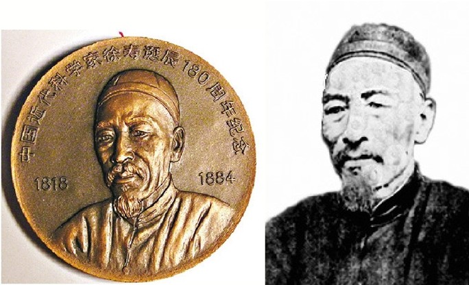 徐寿,中国近代化学先驱,现代科学教育的开创者。1874年,他与英国传教士傅兰雅等在上海创办了格致书院,这是近代中国最早系统传播自然科学知识、培养科技人才的新型学堂之一。1876年6月22日,上海格致书院正式开院,开设有矿物、电务、测绘、工程、汽机、制造等多门课程,专设阅览室和博物院,陈设各类“格致器具”,在授课同时辅以实验。并以开办书院为契机,创办了近代最早的中文科技期刊《格致汇编》,徐寿是本刊的主要撰稿人之一,为近代化学等自然科学知识在中国的传播作出了重要贡献。