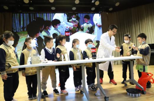 中国化工博物馆根据自身优势,针对小学部学生特点,精心编排了一场化学科普秀表演,让同学们近距离的感受到了化学的魔力和化学变化的神奇。