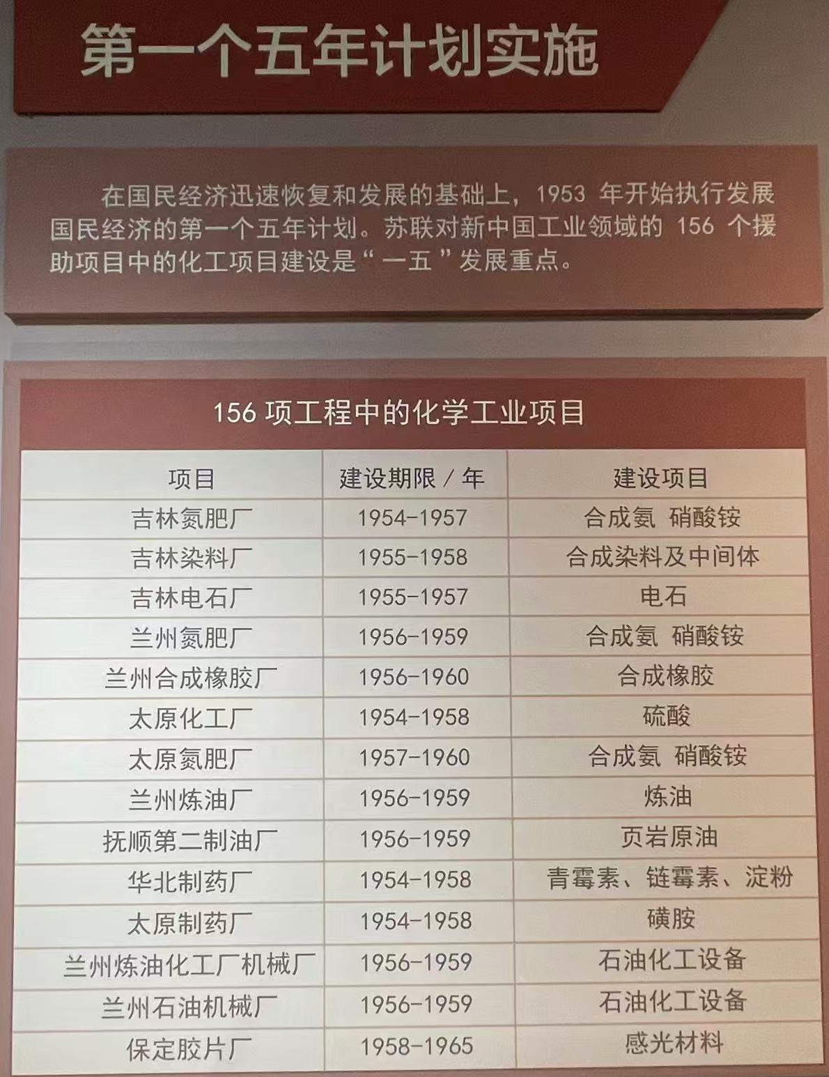 1949年之后的部分,当然是展览的重中之重。鼎革之初便掀起工业化浪潮。“一五”时期苏联援建的“156项重点工程”至今被人津津乐道,其中,化工主要是吉(林)兰(州)太(原)三大化工基地的建设。