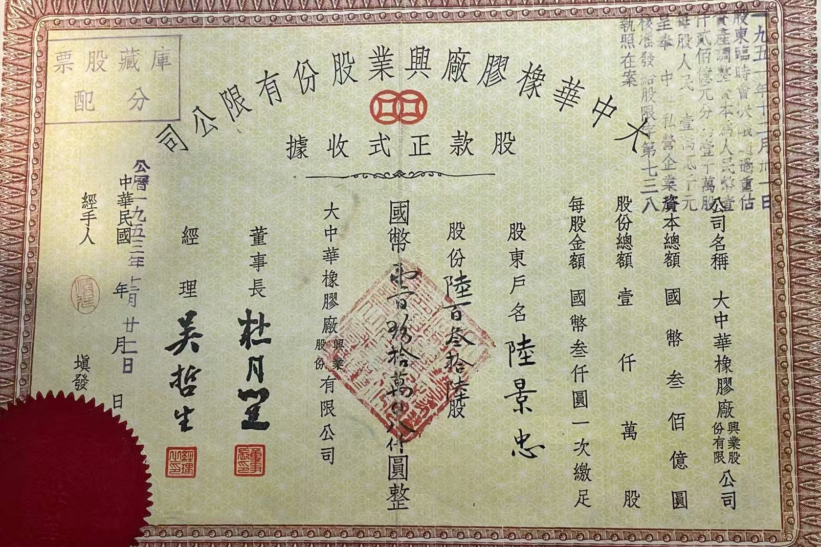 民国时期,政局动荡,国势危艰,却是“实业救国”深入民心、企业家辈出的时代。化工成为当时的新兴产业和支柱产业。在大中华橡胶厂兴业股份有限公司的股票上,赫然有“董事长杜月笙”的字样,历史的吊诡和复杂由此可见一斑。