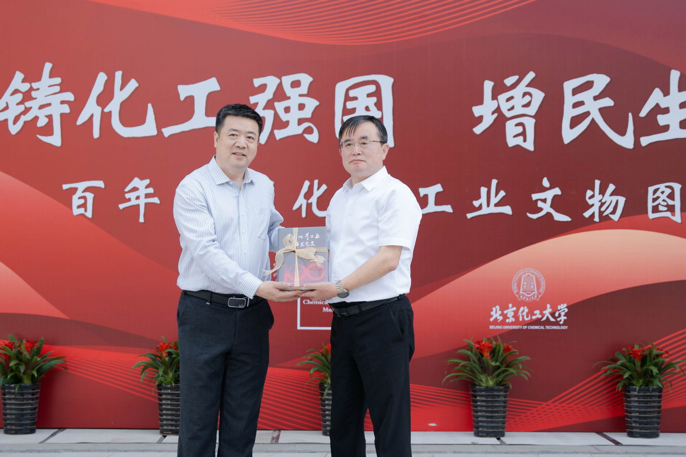 开幕式上,中国化工博物馆向北京化工大学赠送书籍《中国化学工业百年发展史》。该丛书由中国化工博物馆主持编撰,完整记录中国化学工业发展历史,反映新时代工业转型发展的行业使命与担当的重要主题,并成功入选了“十四五”时期国家重点出版物出版专项规划项目。